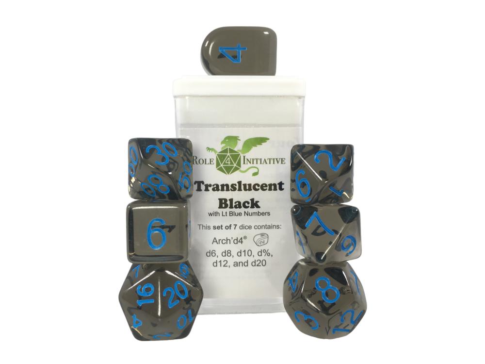 Dice - Translucent Black/Lt Blue 15ct Arch'd4 Gaming Roll 4 Initiative