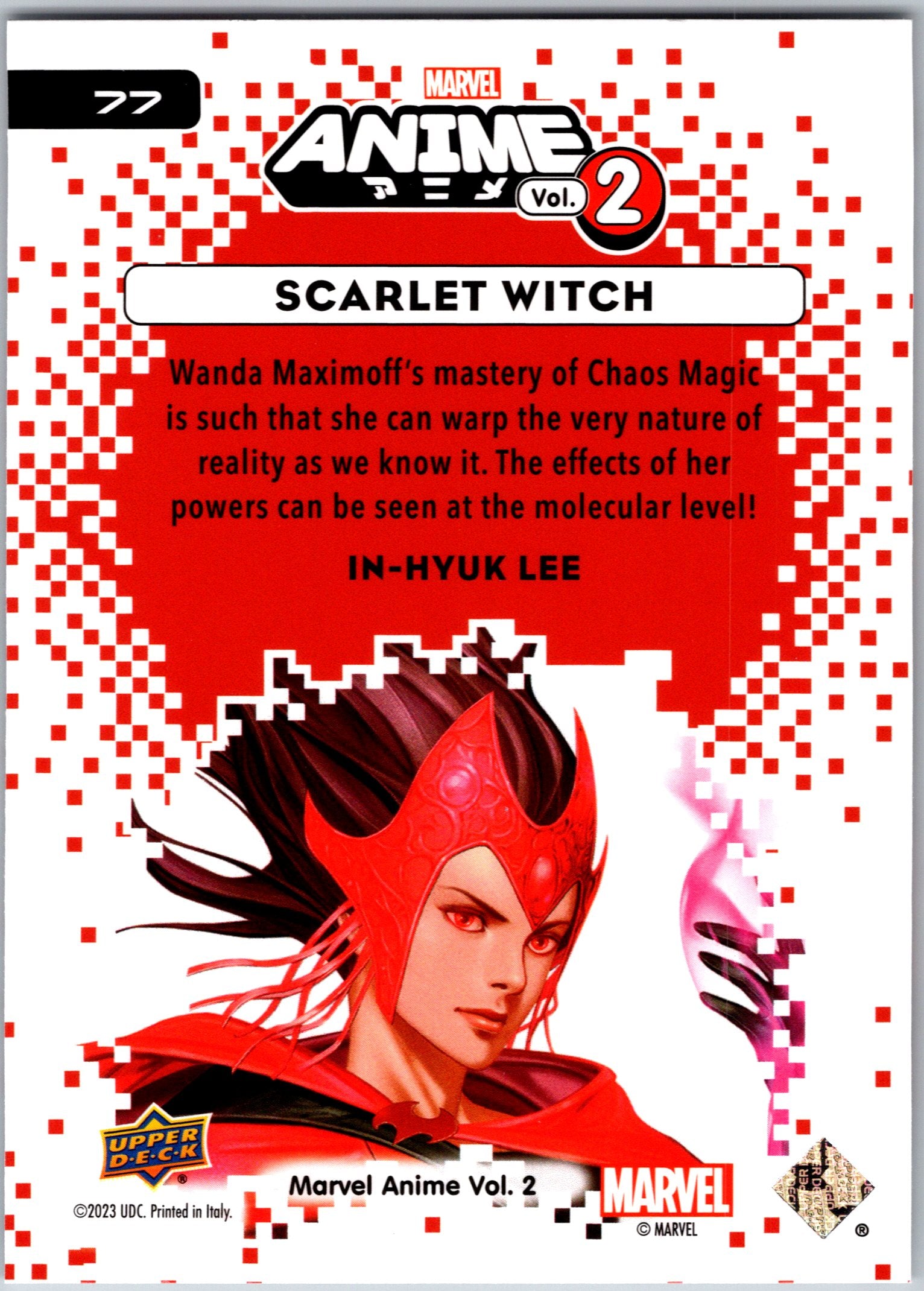Base card from the 2023 Marvel Anime Volume 2 set, #77 - Scarlet Witch