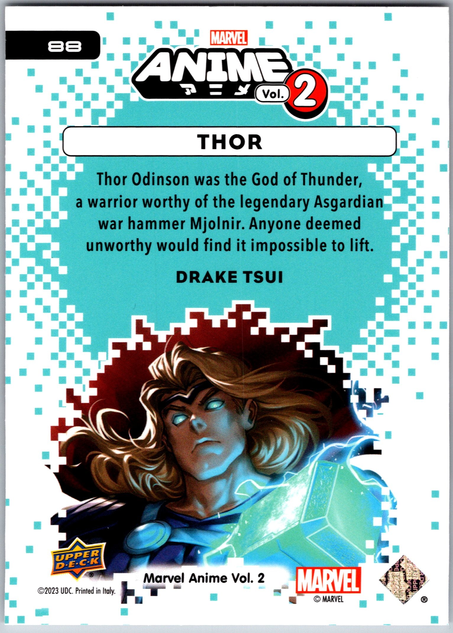 Base card from the 2023 Marvel Anime Volume 2 set, #88 - Thor