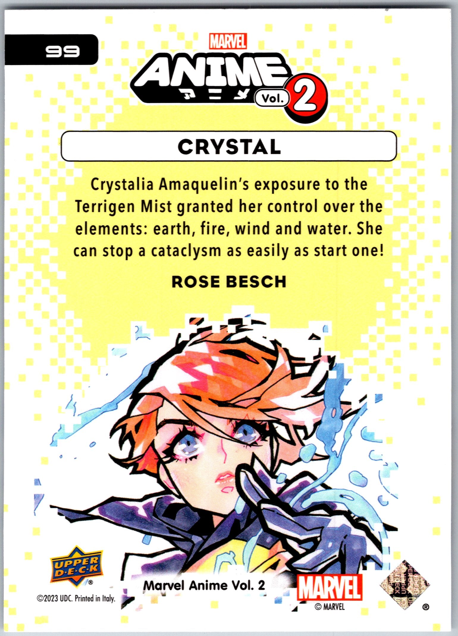 Base card from the 2023 Marvel Anime Volume 2 set, #99 - Crystal