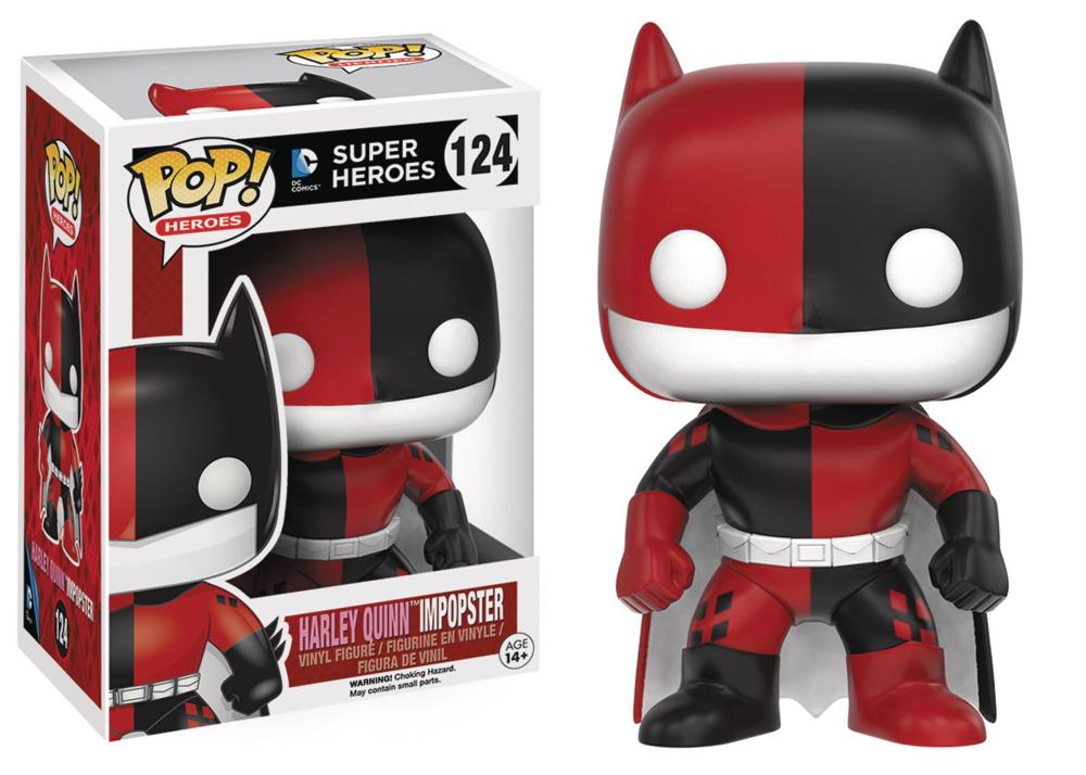 Oh no! What is happening in Gotham? Classic Batman villains are dressing up like Batman and pretending to be the famed Caped Crusader and Batgirl! These 3 3/4\' stylized vinyl Impopsters include The Penguin, The Ridder, Two-Face, The Scarecrow and even Harley Quinn dressed as Batman, plus Harley Quinn and Poison Ivy dressed as Batgirl! Collect your favorites, or collect all of these mind-bending figures! Window box packaging.