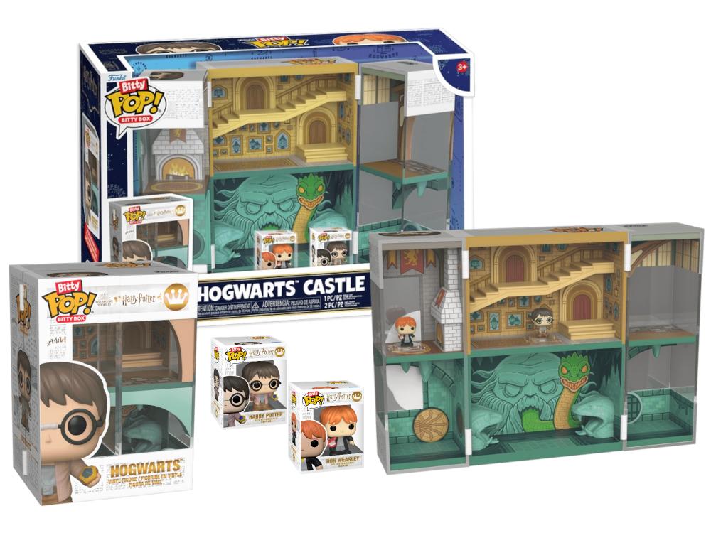 Funko Pop Bitty Boxes Hogwarts Castle. Presenting the ultimate way to showcase your Bitty Pop! collection-Bitty Pop Boxes! These clever foldable scenes bring your favorite mini collectibles to life. Simply pop open the themed environment and display the two included Bitty Pop!s or mix and match with your favorites for a fun and customizable display. Perfect for collectors and fans alike, Bitty Pop Boxes make every scene a showstopper!